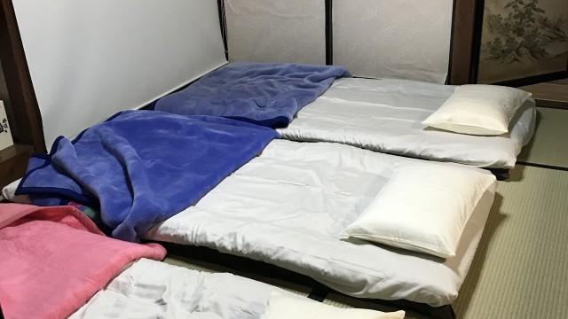- 敷布団、掛布団、毛布、枕、シーツ、枕カバーを備えています。